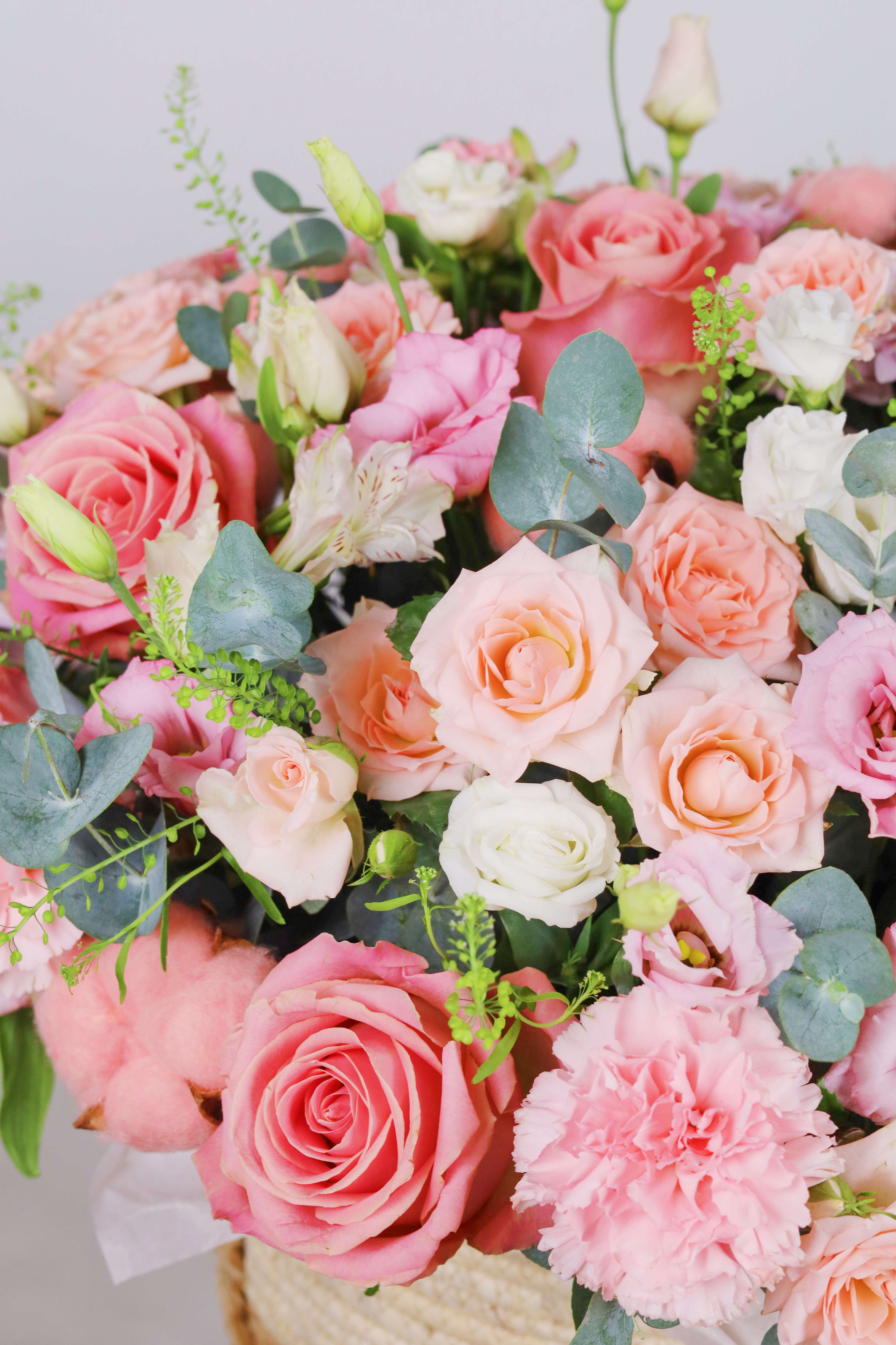 —БОЛЬШАЯ КОРЗИНА С РОЗОЙ И ЭВКАЛИПТОМ