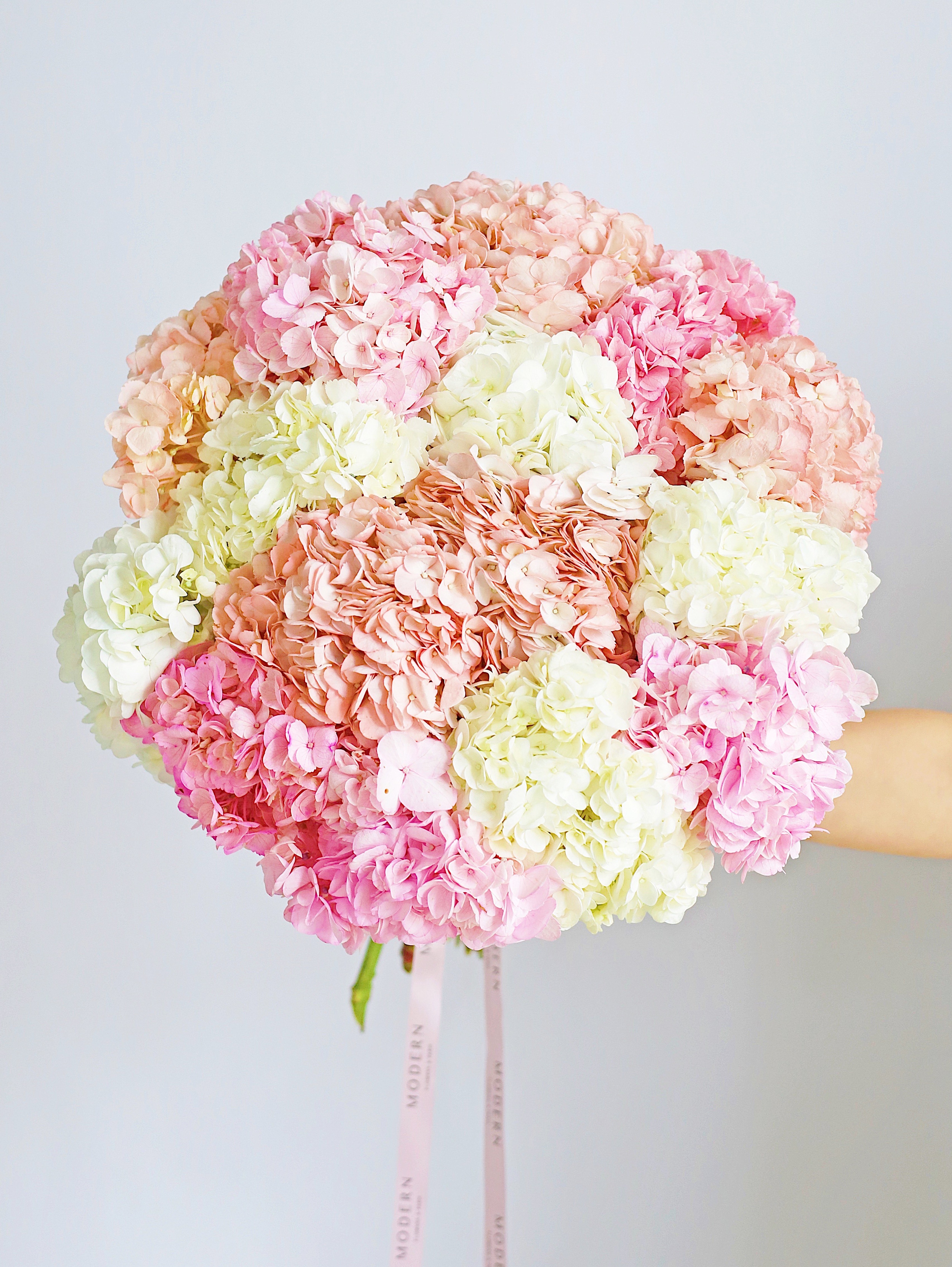 Представляем вашему вниманию великолепную монокомпозицию, состоящую из 15 роскошных гортензий — символ изобилия и искренних чувств.