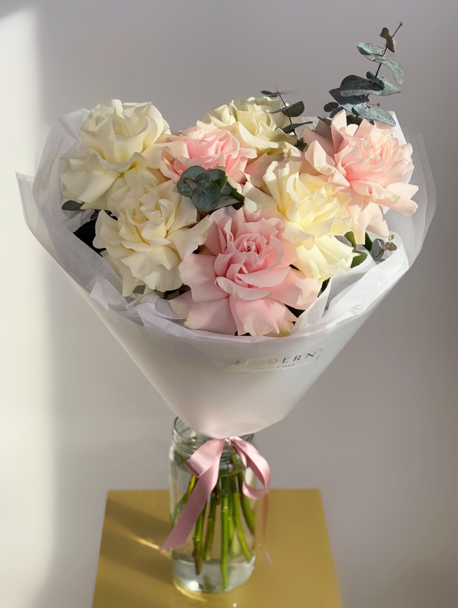 БУКЕТ ФРАНЦУЗСКИХ РОЗ И ЭВКАЛИПТА