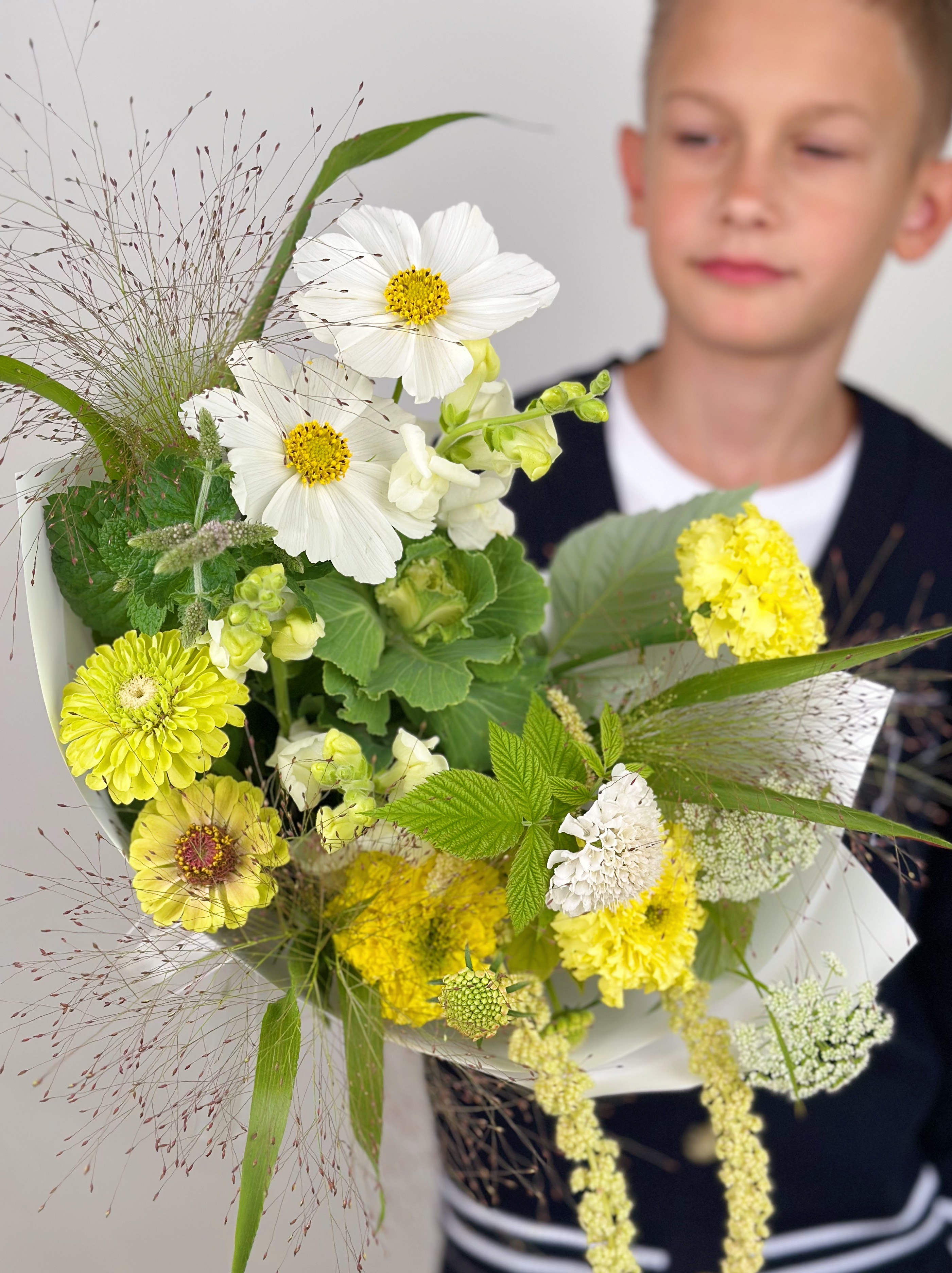 —БУКЕТ ИЗ ФЕРМЕРСКИХ ЦВЕТОВ С КОСМЕЕЙ И АМАРАНТОМ