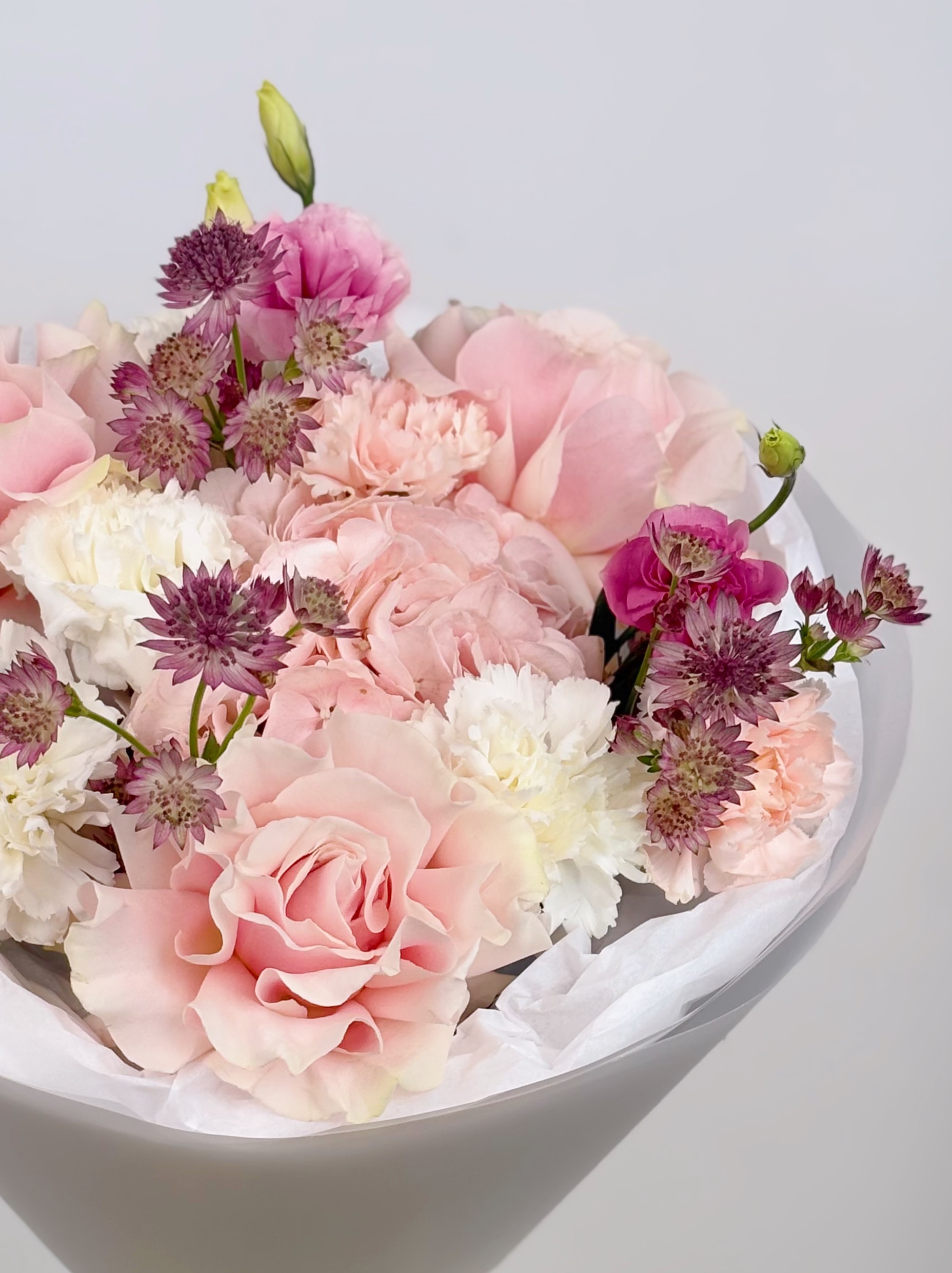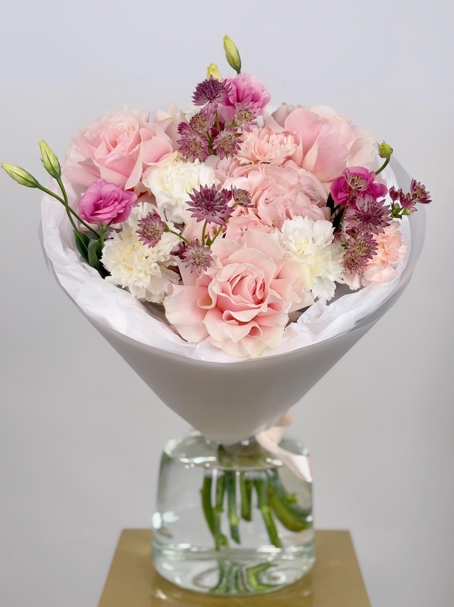 —БУКЕТ С ФРАНЦУЗСКОЙ РОЗОЙ И ЭУСТОМОЙ