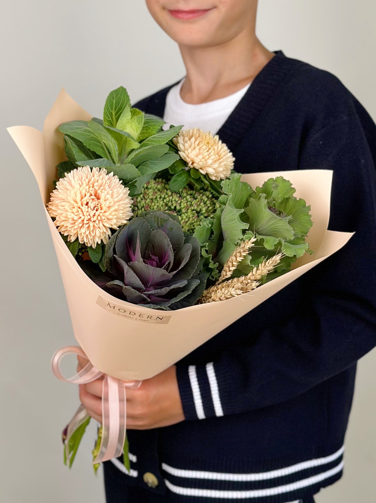 ОСЕННИЙ БУКЕТ С АСТРОЙ И БРАССИКОЙ