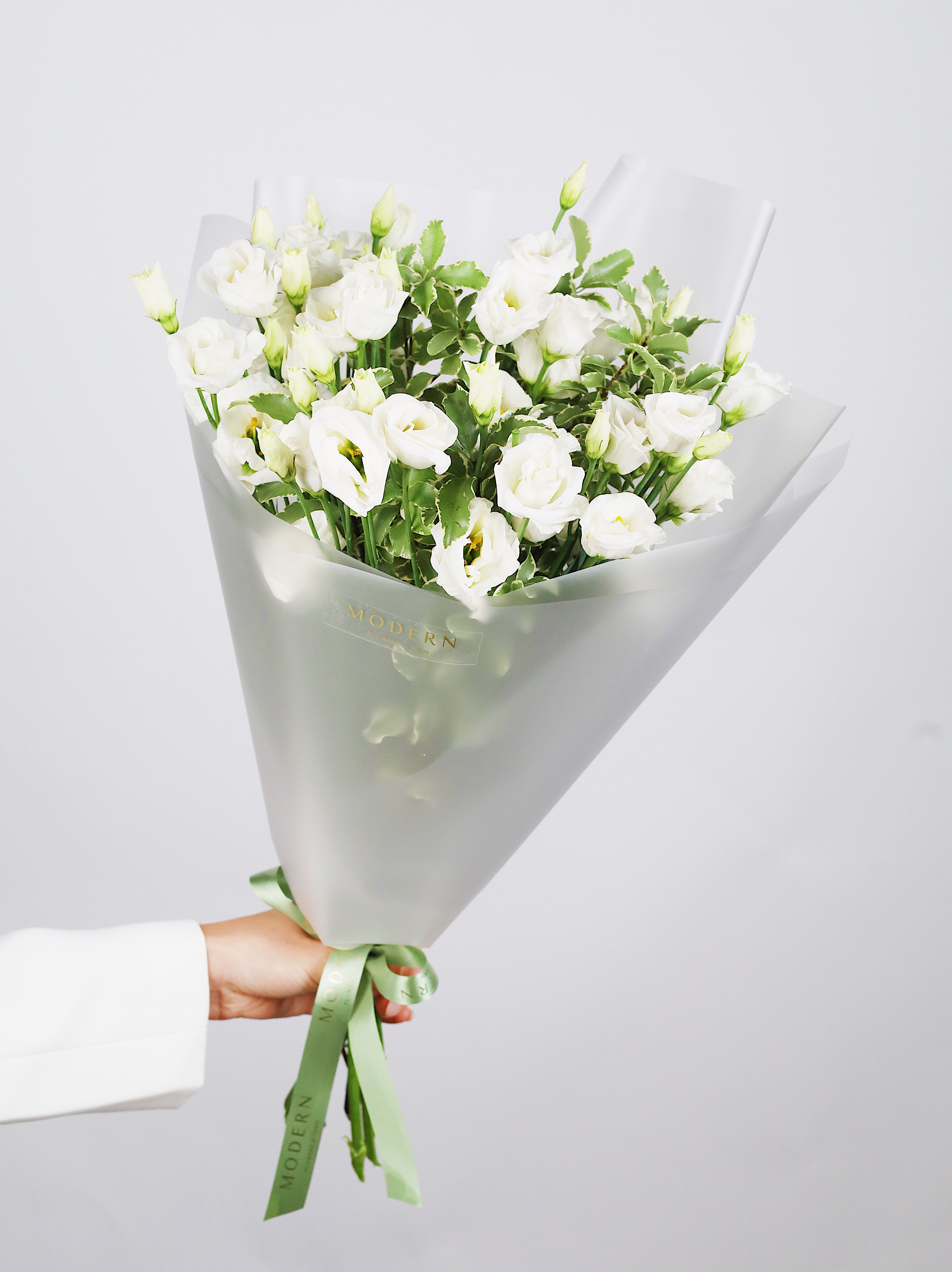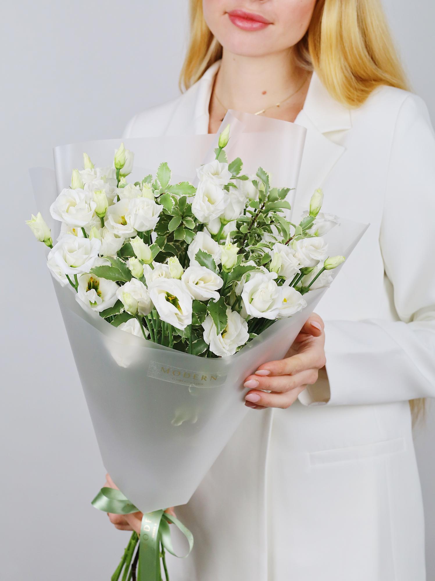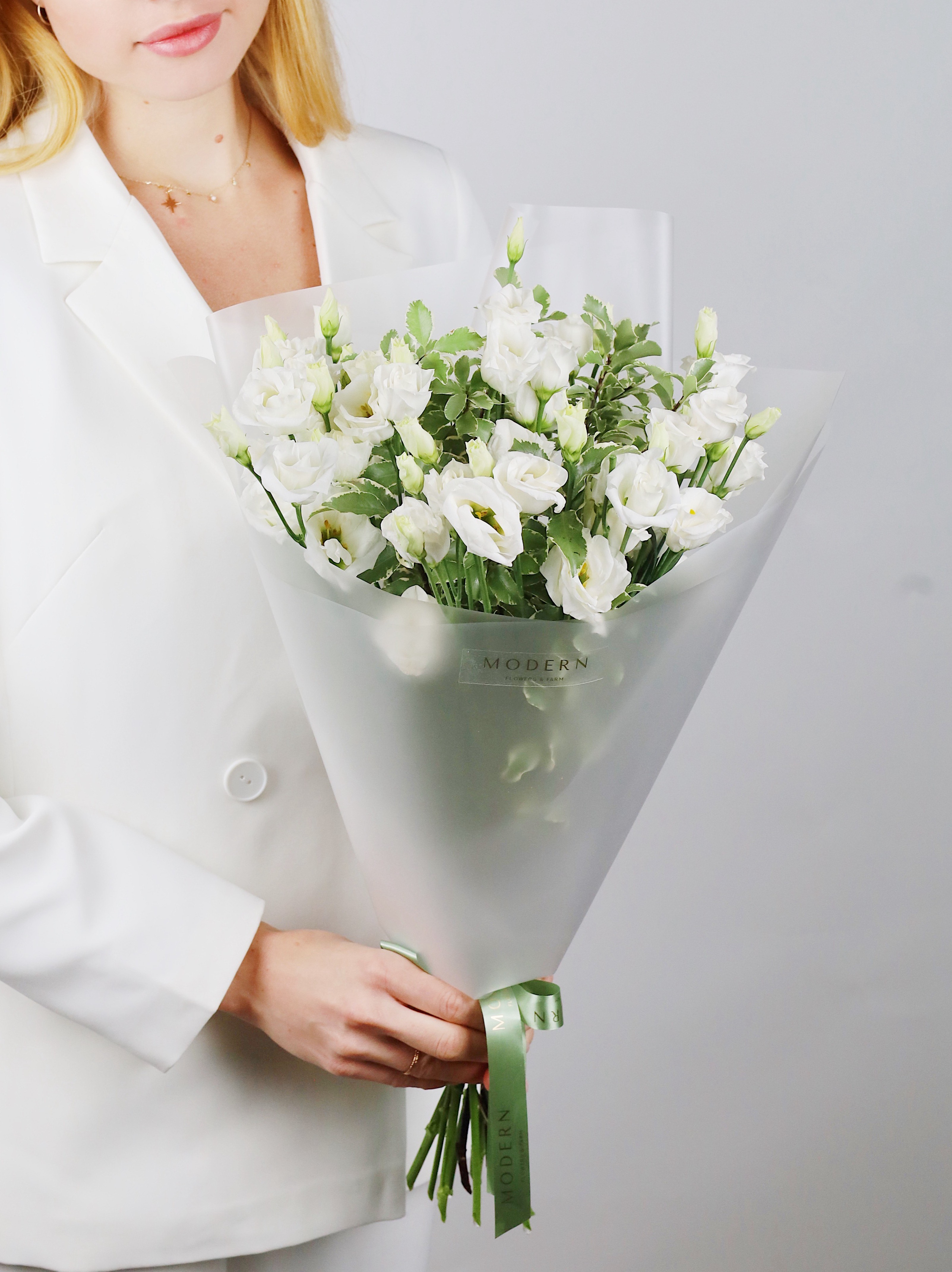 ЭЛЕГАНТНЫЙ БУКЕТ С ЛИЗИАНТУСОМ И ЗЕЛЕНЬЮ
