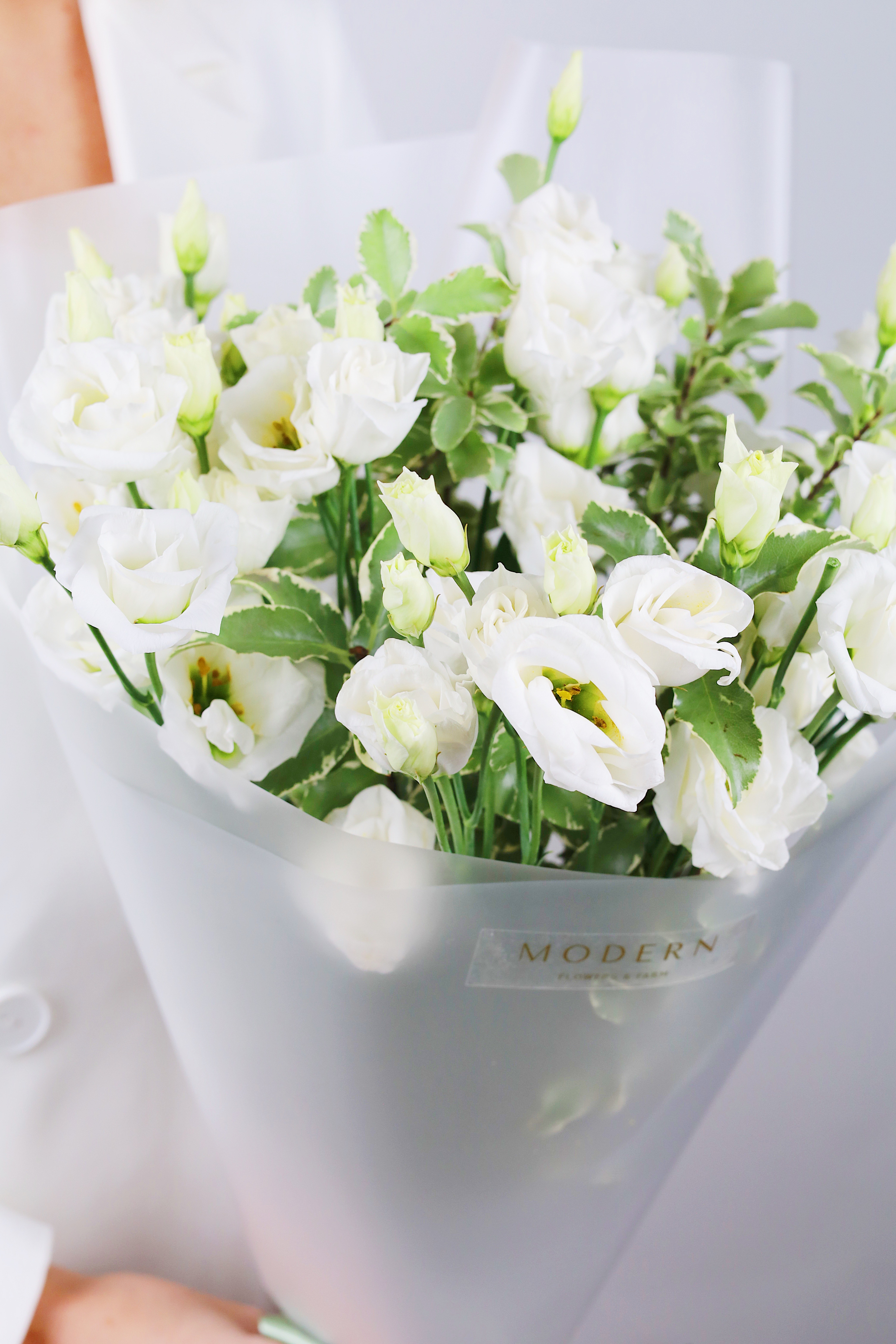 —ЭЛЕГАНТНЫЙ БУКЕТ С ЛИЗИАНТУСОМ И ЗЕЛЕНЬЮ