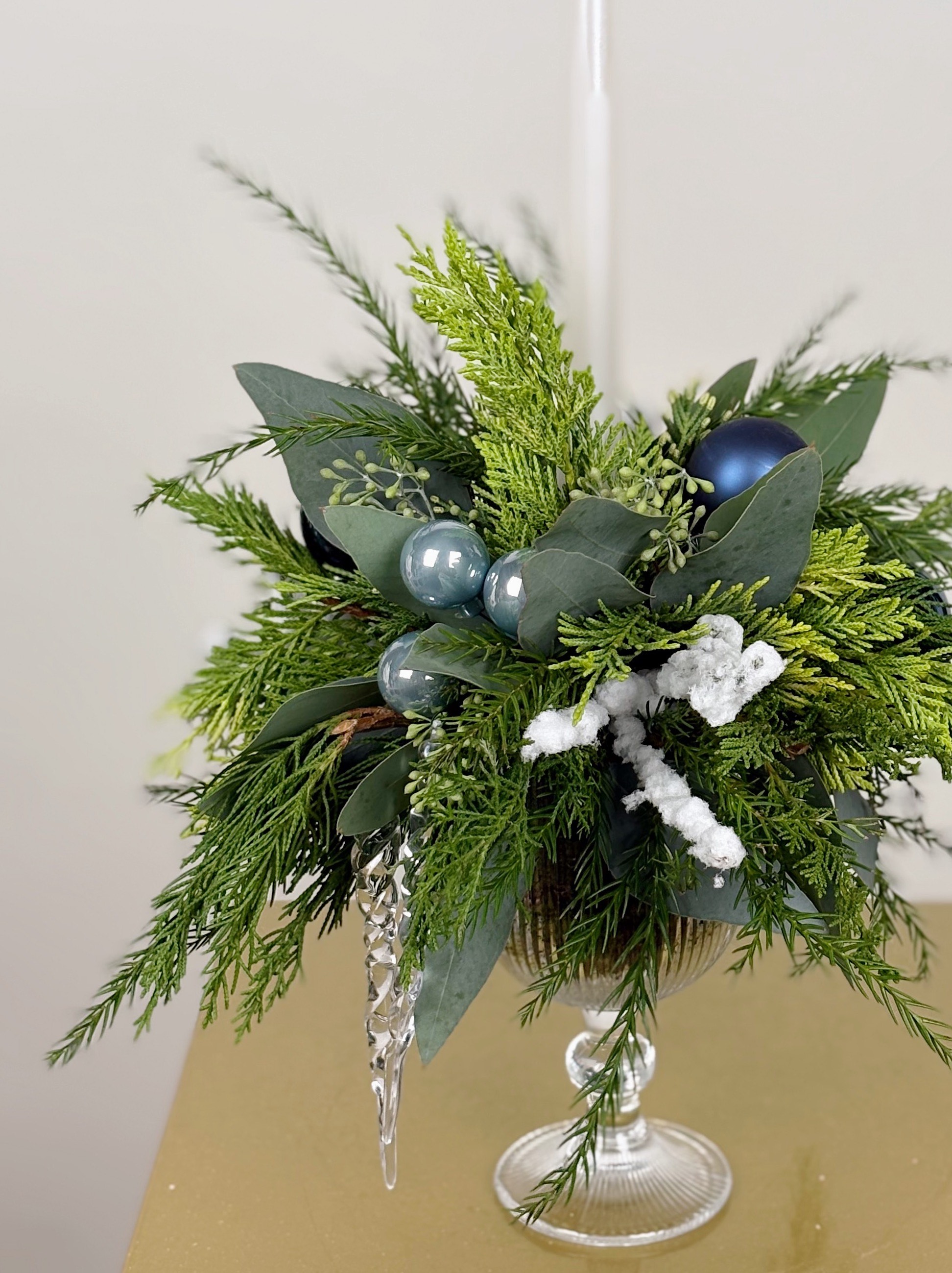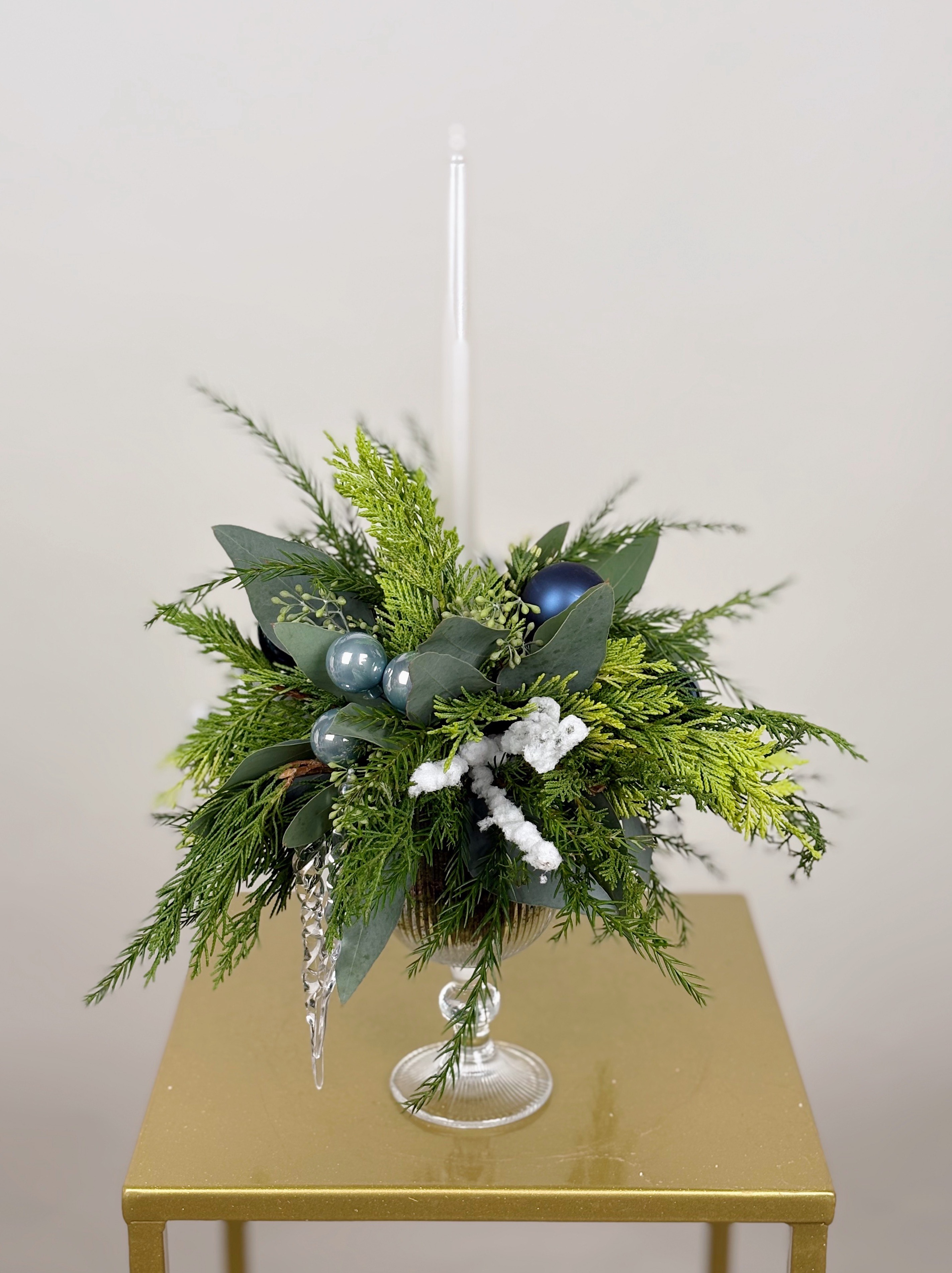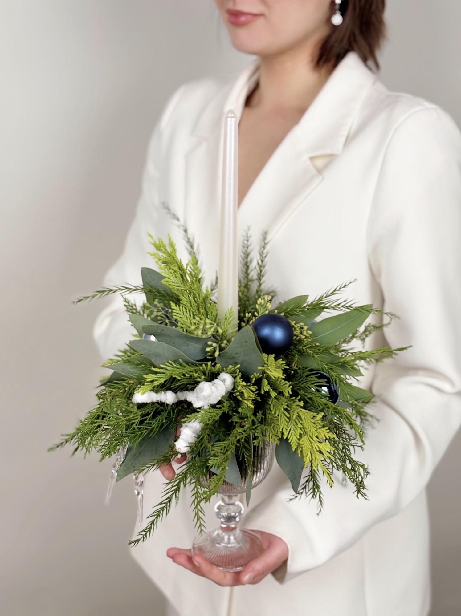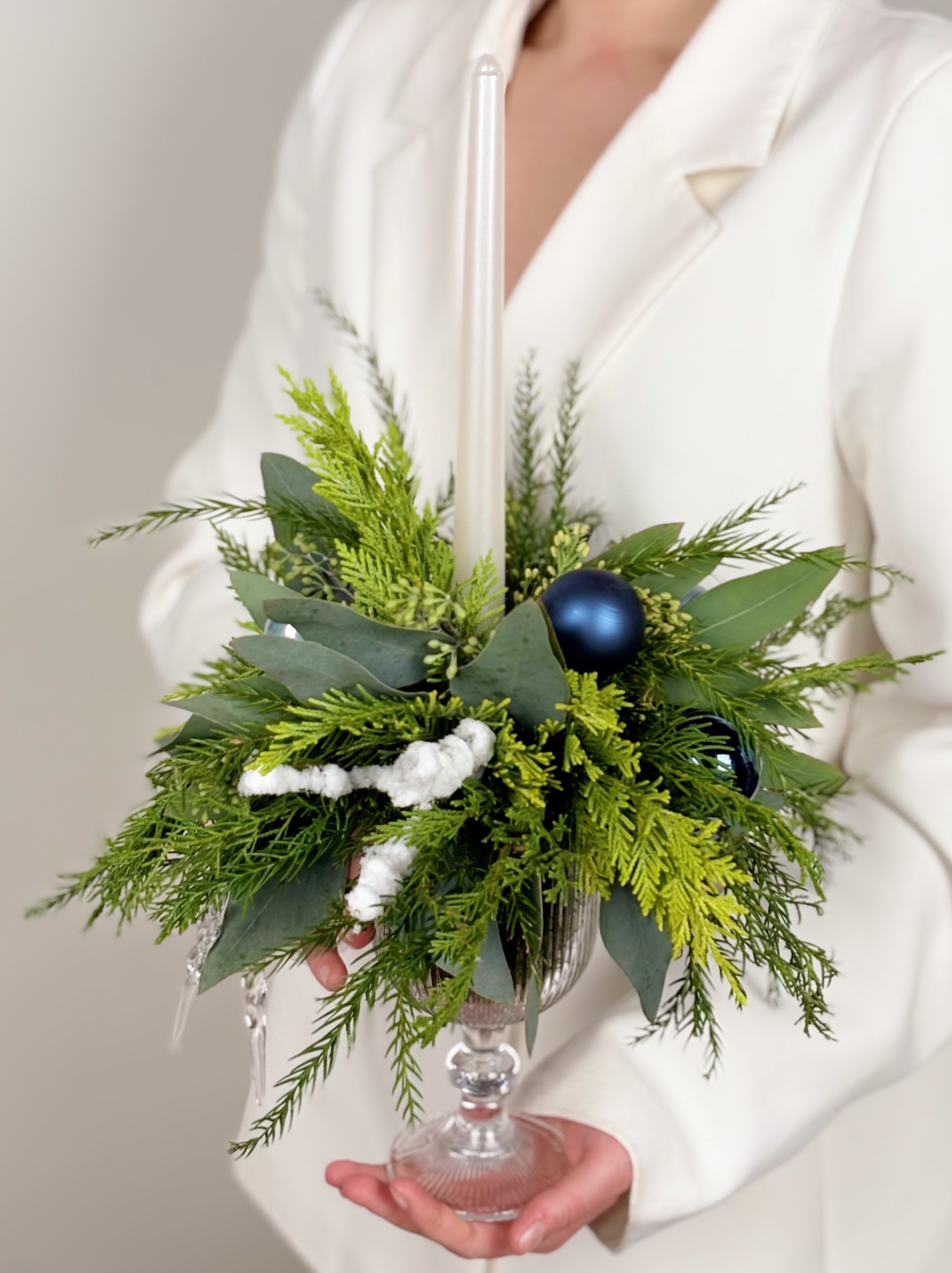 ХВОЯ В БОКАЛЕ СО СВЕЧЕЙ В СИНЕМ ОТТЕНКЕ