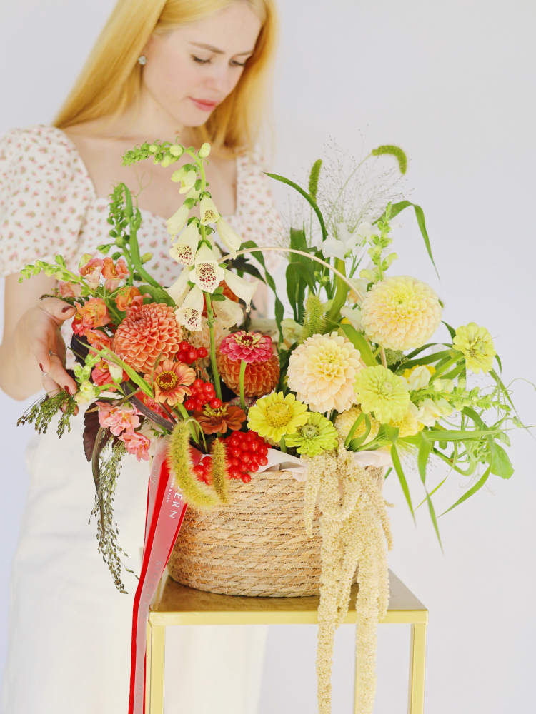 Композиция из цветов - одна из популярных категорий в онлайн-каталоге магазина Modern Flowers & Farm. Такой подарок покупают на День учителя, 1 сентября, юбилей, новоселье и т.д.