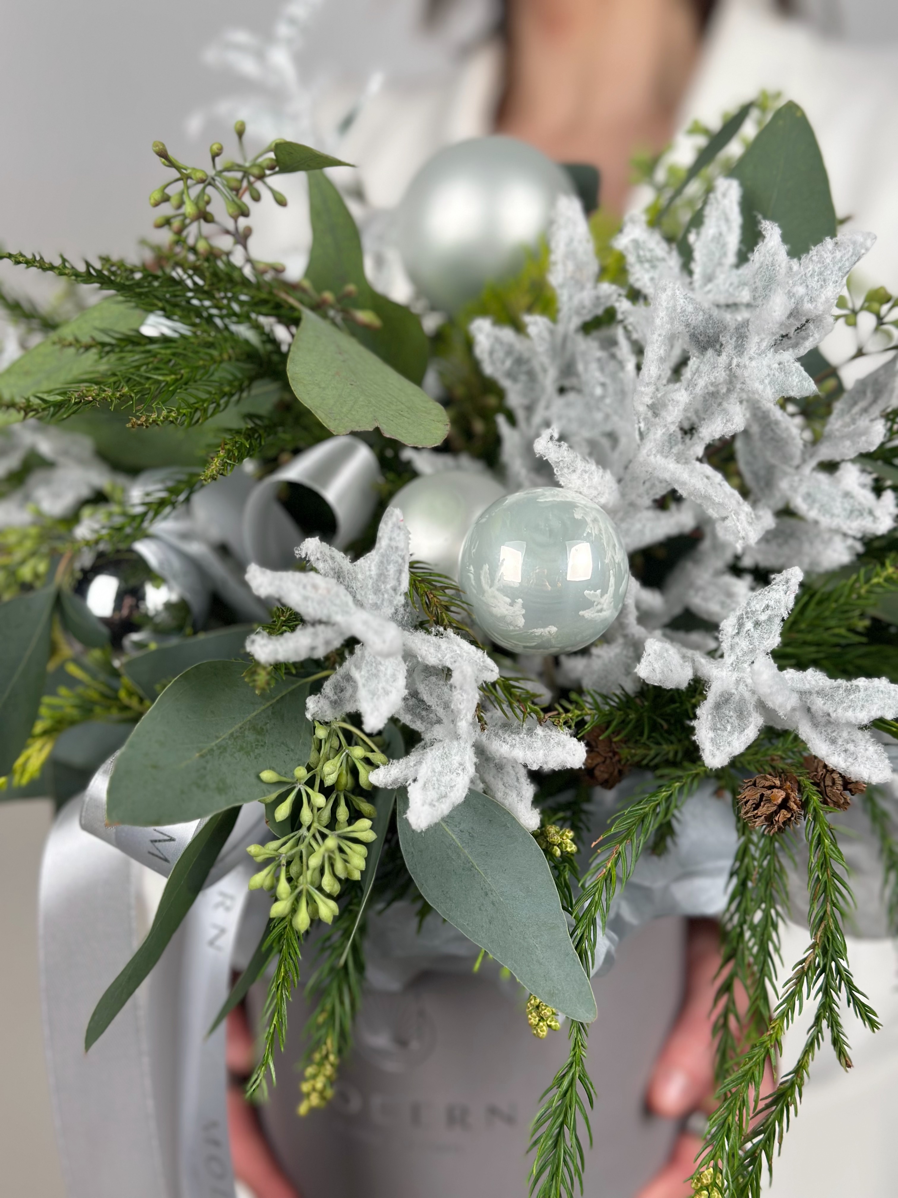 —КОМПОЗИЦИЯ ИЗ ХВОИ И ЭВКАЛИПТА В ШЛЯПНОЙ КОРОБКЕ