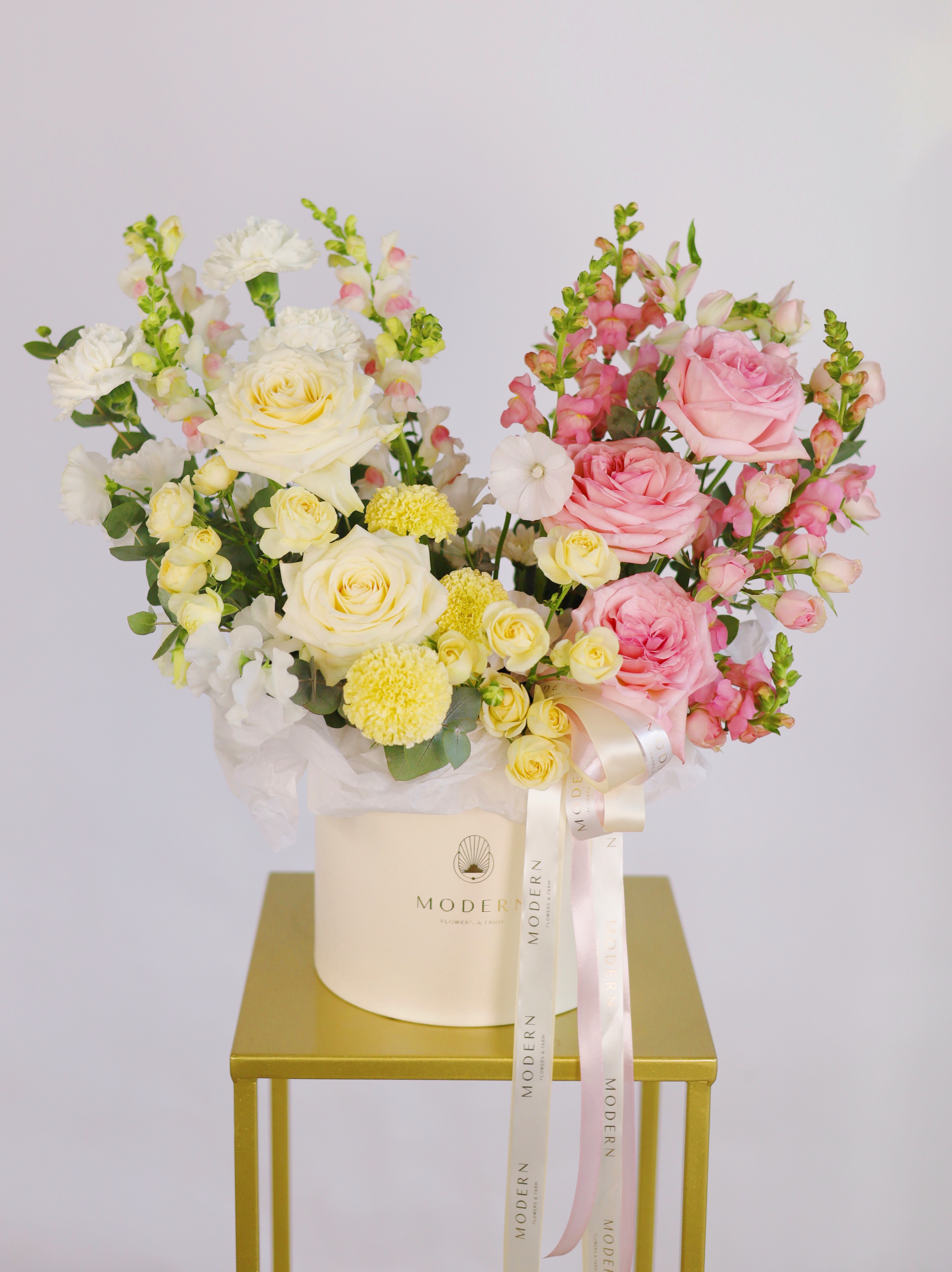 Состав букета или композиции может отличаться от фото на сайте, в зависимости от сезонности и наличия цветов, при этом мы всегда стараемся сохранить стилистику и цветовую гамму.