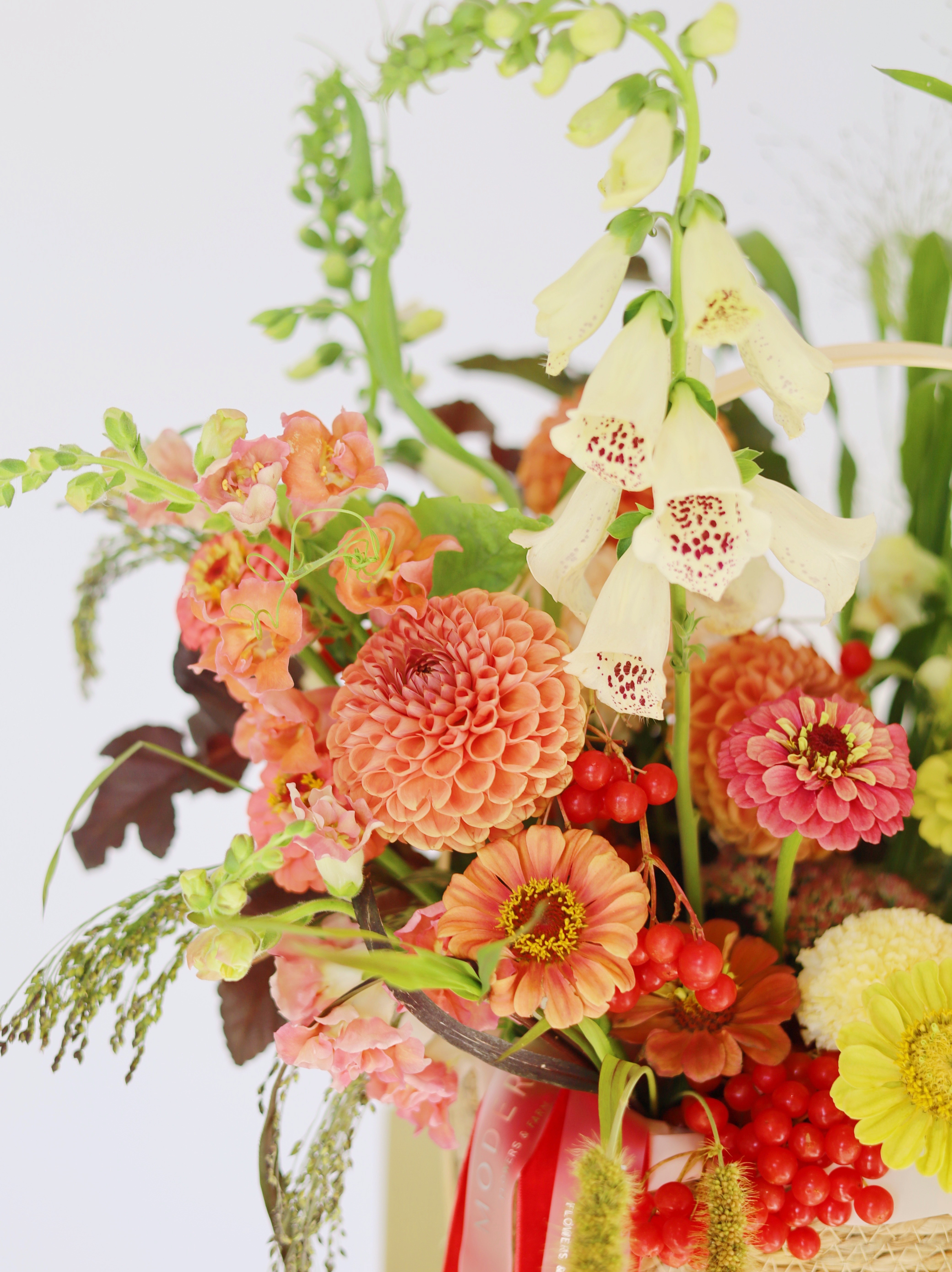 КОРЗИНА С ГЕОРГИНАМИ, НАПЕРСТЯНКОЙ И АМАРАНТОМ