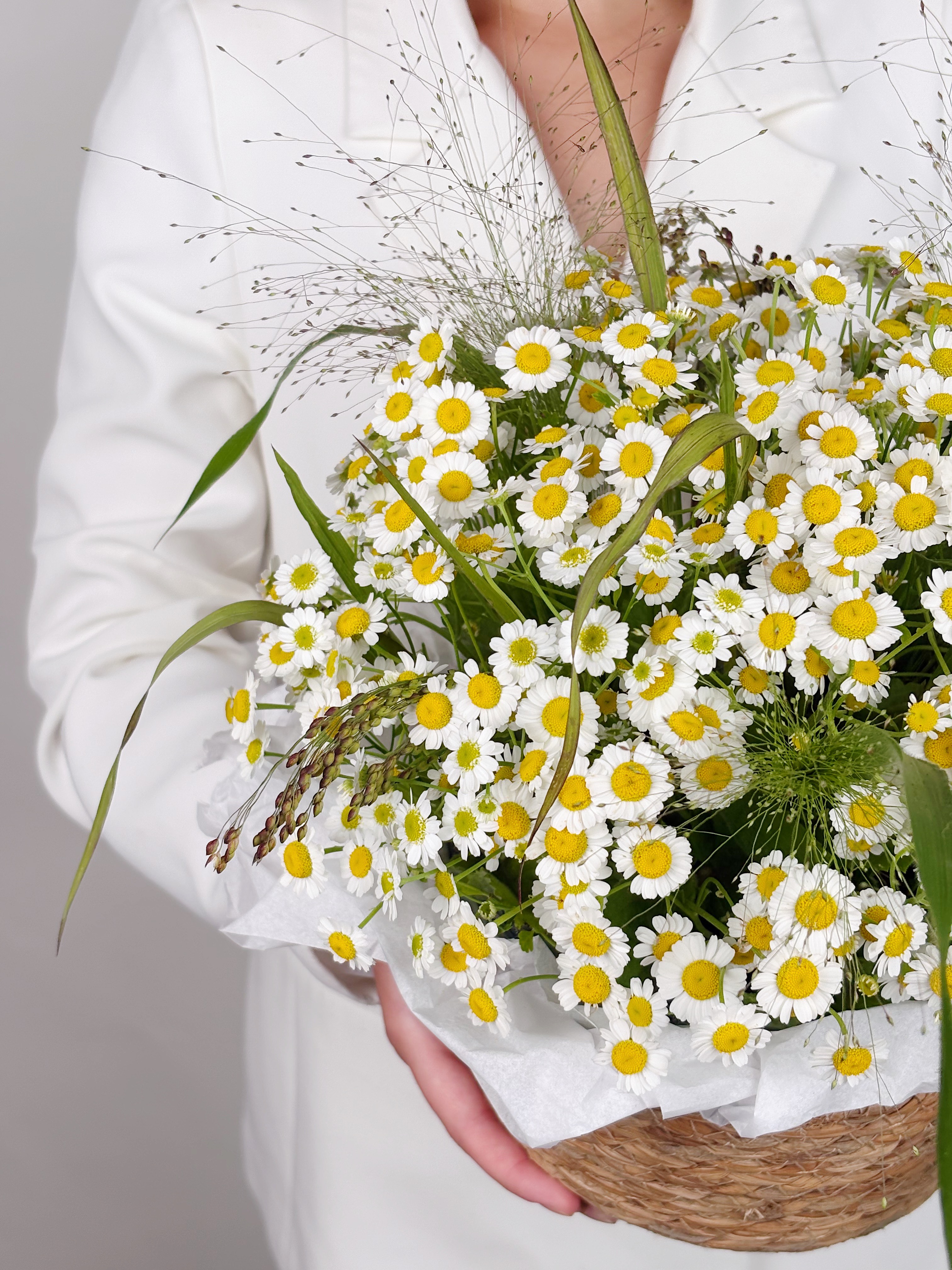 КОРЗИНА С РОМАШКОЙ И ЗЛАКАМИ