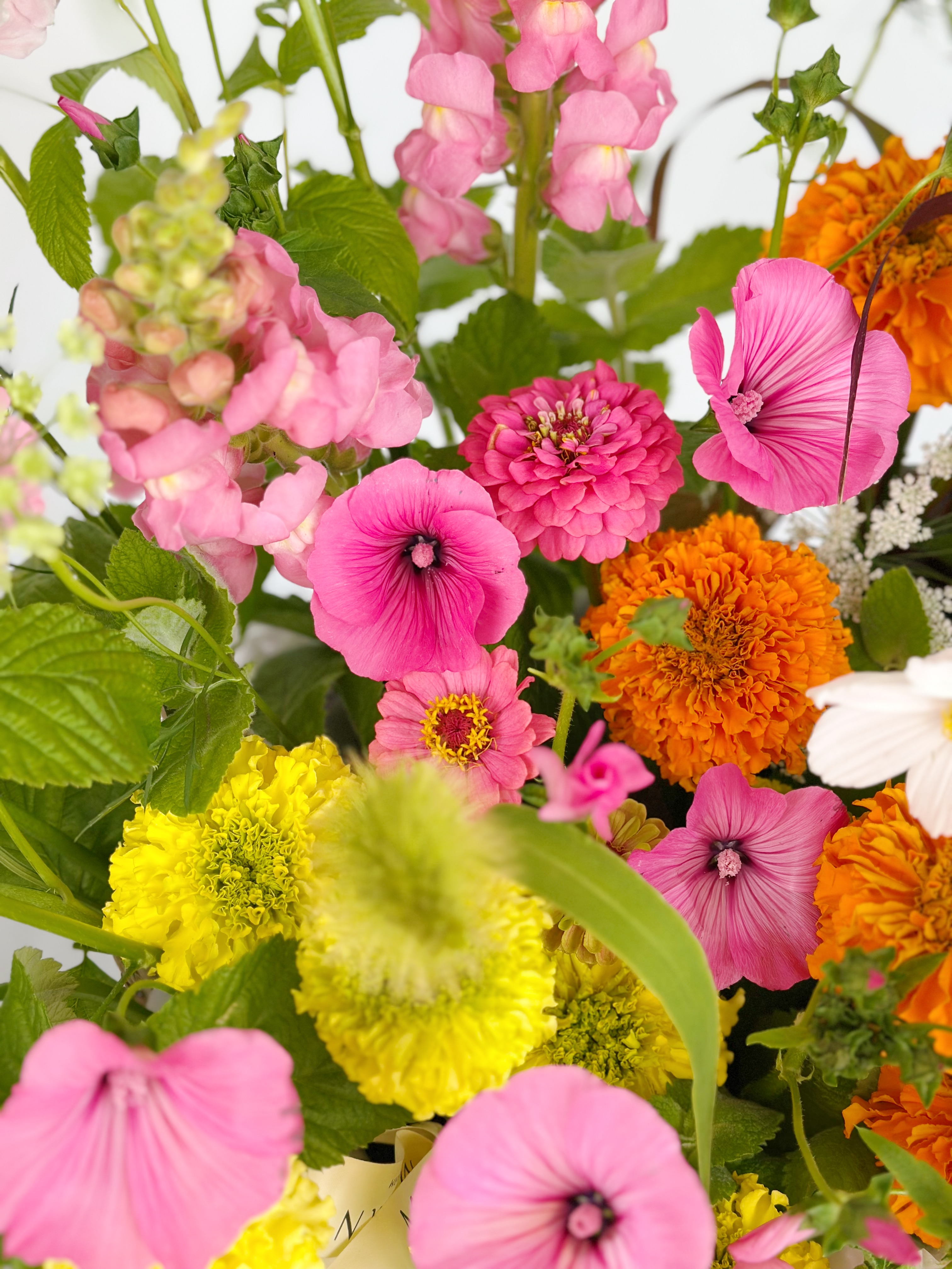Представляем вам уникальную композицию из свежесрезанных фермерских цветов, собранных с любовью на наших полях. Плетёная корзина, наполненная яркими летними цветами, создаст атмосферу уюта в вашем доме.